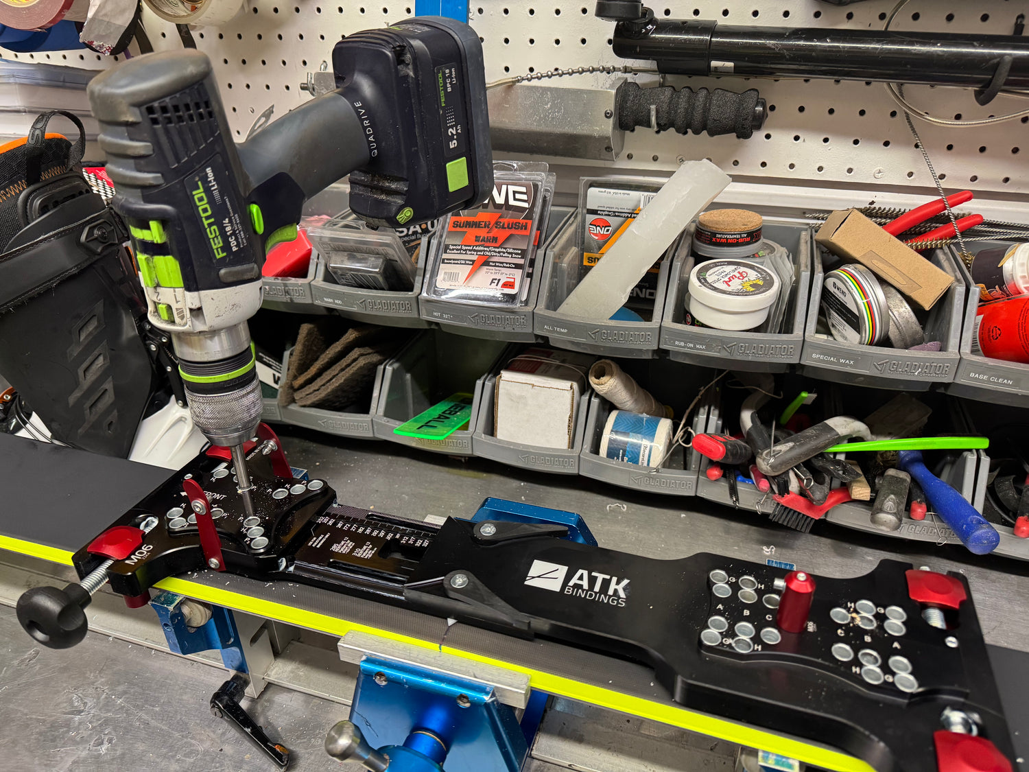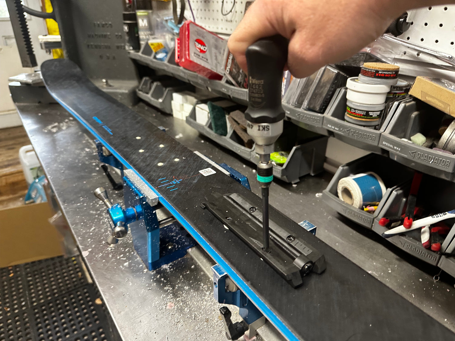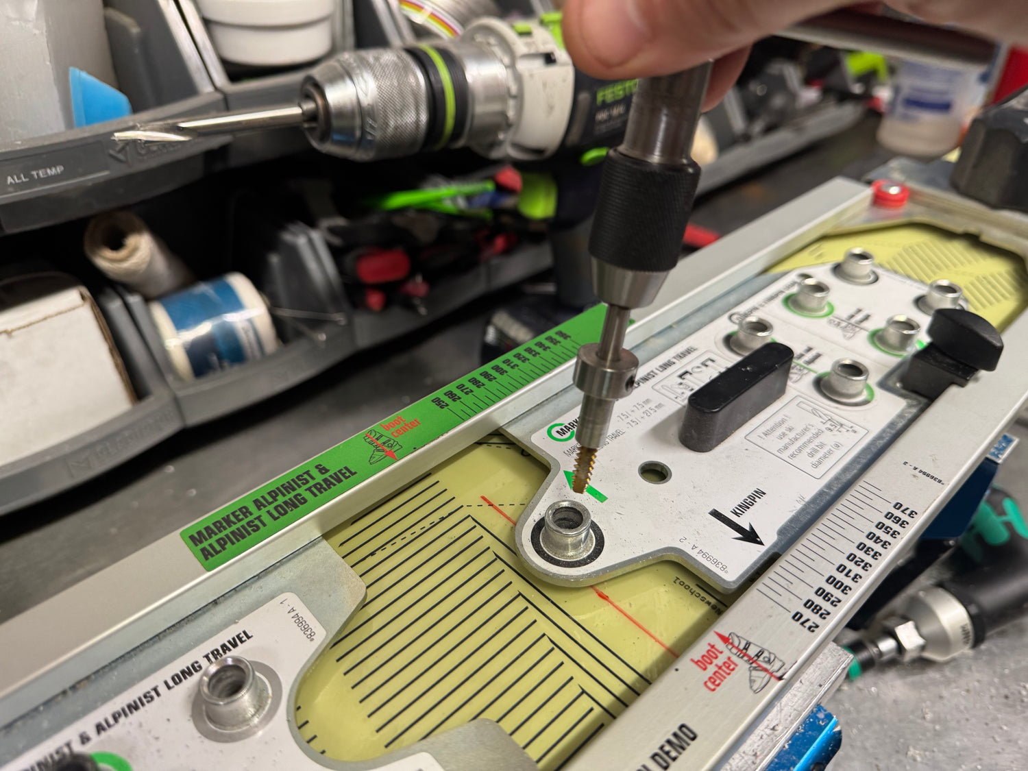We use only premium, ski-specific drill bits from Wintersteiger and professional Festool drills, ensuring clean, precise holes at the exact depth —every time.